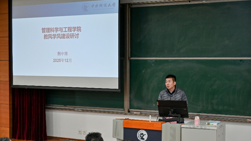 副院长荆中博作了关于学院教风学风建设现状的分析报告。结合“十五五”建设目标及财经类院校的发展趋势,他深入剖析了学院在人才培养和学风建设方面存在的诸多问题,明确指出了学生竞争力与社会发展需求之间的显著差距。针对这些问题,荆中博提出了具体的改进思路:在人才培养方面,需打破专业壁垒,构建“财经+技术+创新”的复合型知识结构,着力培养学生数据驱动决策、跨界整合以及终身学习的能力;在教学改进方面,应优化课程内容,融入社会新案例和实践环节,调整教学深度,避免教学与考试内容脱节,同时创新授课形式和评价体系;在学生发展方面,鼓励同学们树立明确的目标,摒弃“被动规划”和“唯分数论”的观念,学会合理利用AI工具提升学习效率,并强化信息整合与思辨等AI不可替代的核心能力。
