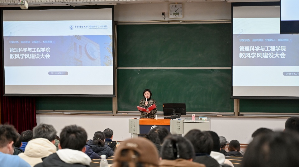 2025年12月3日下午,管理科学与工程学院在沙河校区东区主教111教室隆重召开教风学风建设大会。全院教师及2024级、2025级本科生参会。大会由院党委副书记、纪委书记胡博主持,旨在深入剖析当前教风学风的现状,凝聚师生共识,明确改进方向,全面提升育人质量。