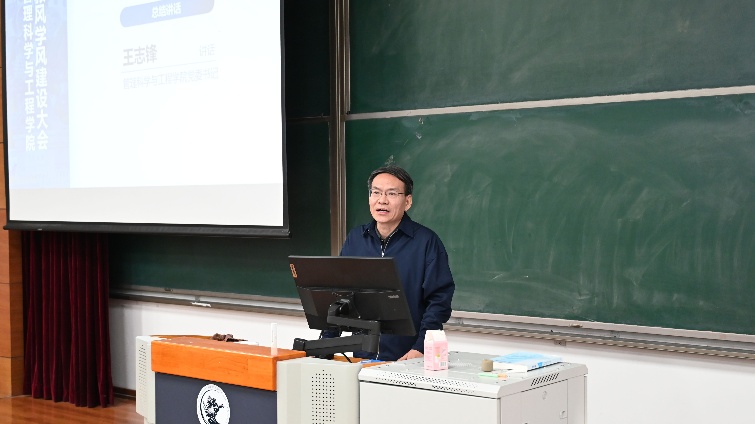 学院党委书记王志锋作总结讲话。他再次强调教风和学风建设在人才培养中的核心地位,指出优良教风与学风相辅相成、辩证统一,是学院发展的“生命线”和立院之基。指出此次全院教风学风建设大会,既是对过去一段时间工作的总结反思,更是对未来学院高质量发展的动员部署。他期望教师们能坚守育人初心,把课堂作为主阵地,主动更新教学理念,创新教学方法,将科研成果融入教学,打造备受学生欢迎的课程和具有实践性的课堂;学生则需树立远大理想和明确目标,将实际行动落到实处,以“求知若渴”的态度投入学习,恪守学术诚信,积极全面发展和主动学习。他强调教风学风建设需要全院师生共同参与、持续发力,未来学院也将会出台相应办法和措施,强化其制度保障功能,努力营造“人人关心教风、人人重视学风”的良好氛围。