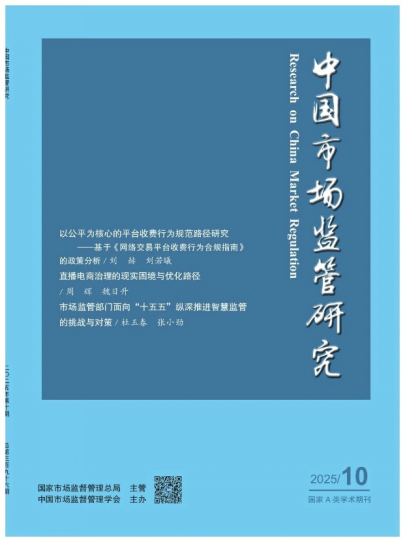 《中国市场监管研究》由国家市场监督管理总局主管,中国市场监督管理学会主办,是市场监管系统唯一面向国内外公开发行的综合性理论期刊、国家A类学术期刊。本刊自1992年创刊以来始终以深化市场监管理论和实践研究为宗旨,聚焦市场监管领域的理论创新成果与实践探索经验,兼具权威性、前瞻性与应用性,致力于能更好地为规范和维护市场秩序服务。
