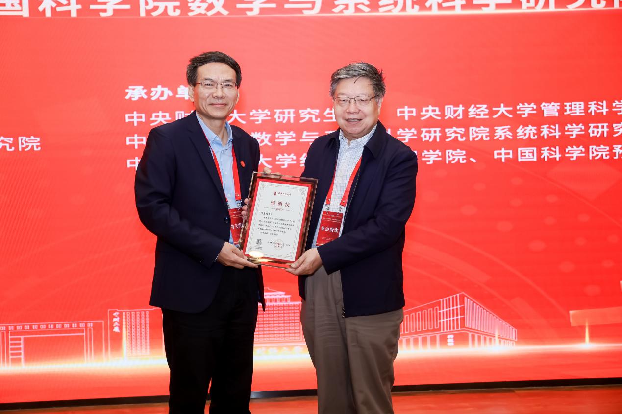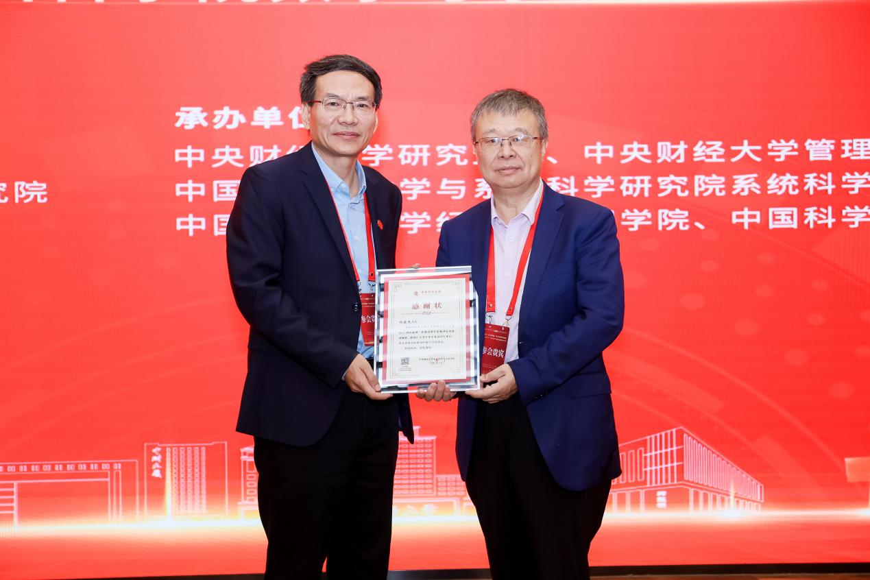 论坛活动结束后,中央财经大学管理科学与工程学院党委书记王志锋为汪寿阳院士与杨晓光研究员等学者颁发科学家精神宣讲活动感谢状。