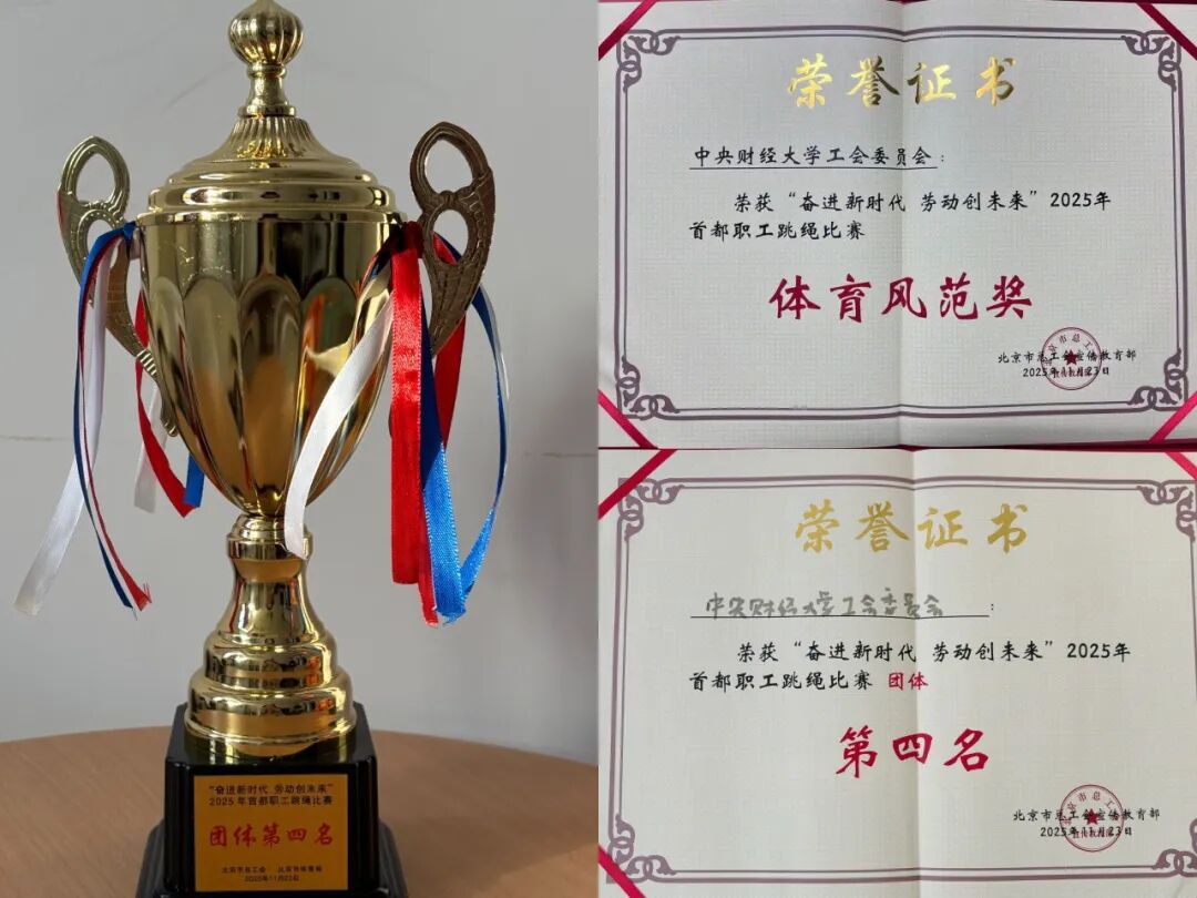 本次比赛由校工会统筹,学院分工会承接集体跳绳参赛项目,并联合外国语学院分工会、北京学院分工会、财政税务学院分工会和智慧校园建设中心分工会,组建12人参赛队伍代表学校出战。老师们利用业余时间积极备战、刻苦训练,最终凭借默契协作与稳定发挥,荣获集体跳绳项目第四名,学校也同时斩获“体育风范奖”。
