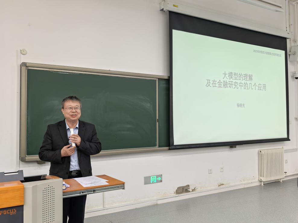 12月10日下午,2025级许国志大数据英才班开班仪式暨许国志大数据英才班名师讲堂系列讲座(三)在我校沙河校区举行。中国系统工程学会理事长、中国科学院系统科学研究所杨晓光研究员受邀出席,并开展《大模型的理解及金融研究应用》讲座。管理科学与工程学院院长刘志东、党委书记王志锋、副院长荆中博、许国志大数据英才班项目主任李爱华、管科系副主任迟钰雪等多位教师出席,2025级许国志大数据英才班全体学生参加仪式。仪式由许国志大数据英才班项目主任李爱华教授主持。
