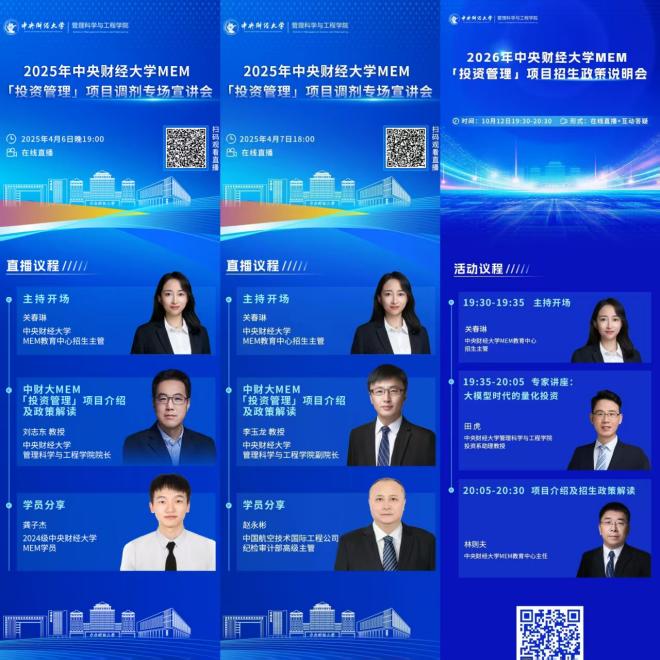 2025年,中央财经大学MEM「投资管理」项目始终坚守“培养应用型、复合型工程管理高层次专门人才”的核心目标,在招生宣传、教学培养、实践活动等多个领域精准发力、攻坚克难,实现了项目规模的跨越式增长与培养质量的稳步提升,为项目可持续发展筑牢根基。