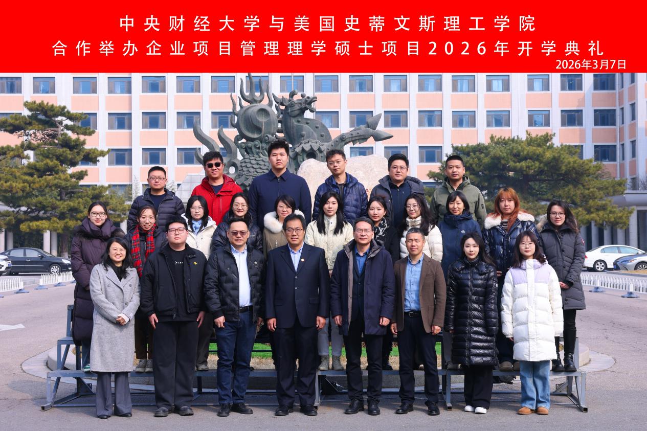 2026年3月7日上午,中央财经大学与美国史蒂文斯理工学院合作举办企业项目管理理学硕士项目第二十期秋季班开学典礼于中央财经大学学院南路校区学术会堂604教室成功举行。开学典礼参加人员包括管理科学与工程学院院长刘志东教授,管理科学与工程学院书记王志锋教授,项目教师代表高婷副教授,美国史蒂文斯理工学院校友代表、管理科学与工程学院校友会副会长陈海雄,管理科学与工程学院国际合作交流办公室全体教师,项目第十九期优秀学生代表卢泓予以及项目第二十期秋季班学员。