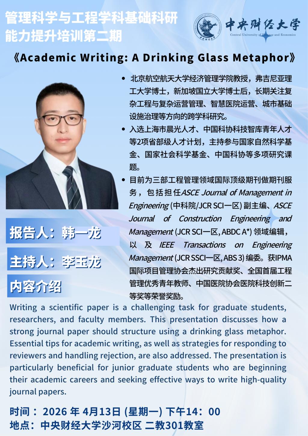 讲座 | 管理科学与工程学科基础科研能力提升培训第二期